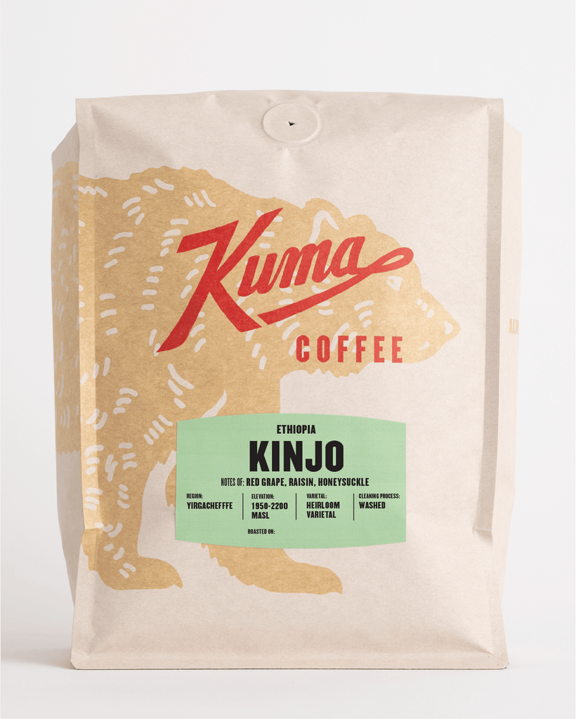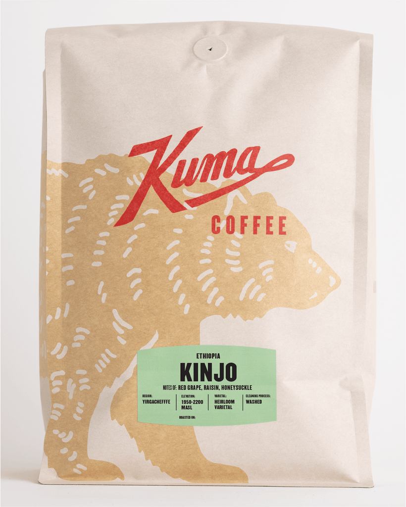 Washed coffee at Kinjo is processed simply and with great attention to detail: fresh-picked cherry is delivered each day by contributing farmers and hand-sorted upon arrival for uniformity and ripeness. Once sorting is complete, cherry is weighed and logged, and then depulped and fermented overnight in fresh water, rinsed again with fresh water the next morning, and taken directly to raised beds to dry, a process that typically takes 15-18 days. During the drying period the coffee is constantly rotated during the day and covered at night to prevent the area’s humidity from settling on the coffee's brittle parchment. Fully dried parchment is transported to Addis Ababa for final milling and export.