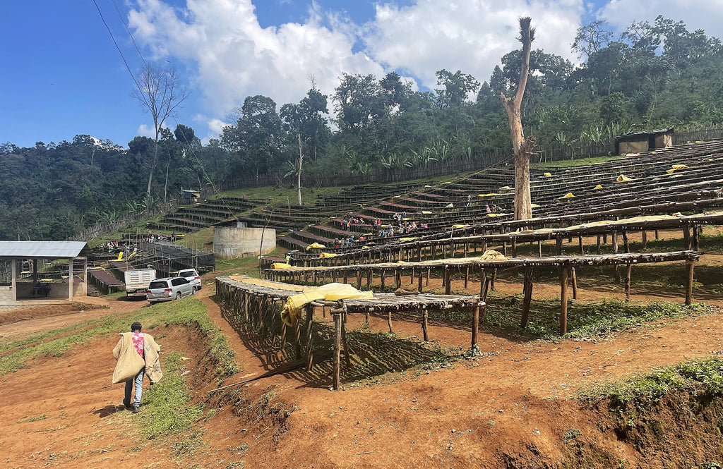 The Kinjo washing station is located in Deretu and operated by Lato Agro. The site receives cherry from 650 individual smallholders, each averaging 1-2 hectares apiece of farmland. On these farms coffee typically shares the land with enset—a fruit-less relative of the banana tree whose pulp is scraped and packed into cakes, fermented underground, and then toasted as kocho, a staple starch in the area.